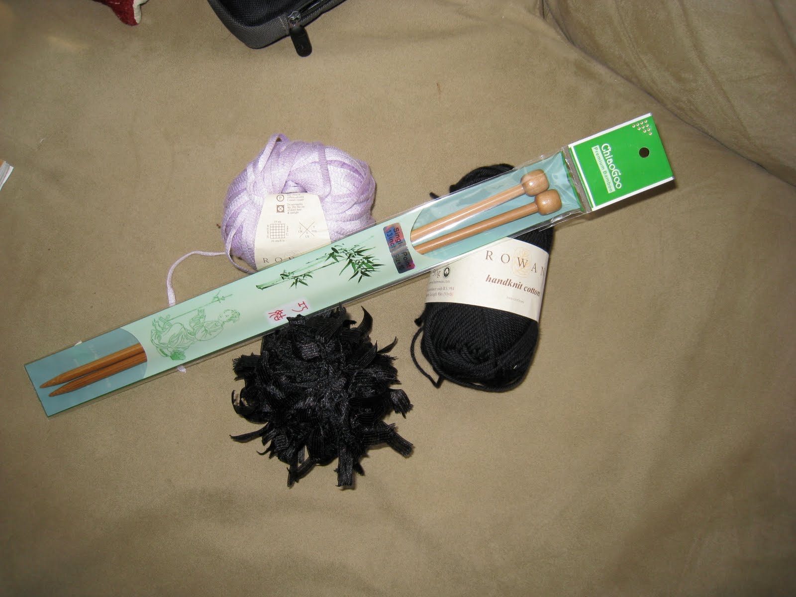 We had a wonderful three day weekend. I picked up some nice goodies at the Santa Monica knit shops. I decided to make another Ruffle Scarf with the Rowan Cotton blend and a silved yarn I picked up in New York. Here's some pictures of the yarn I picked up in Santa Monica.
